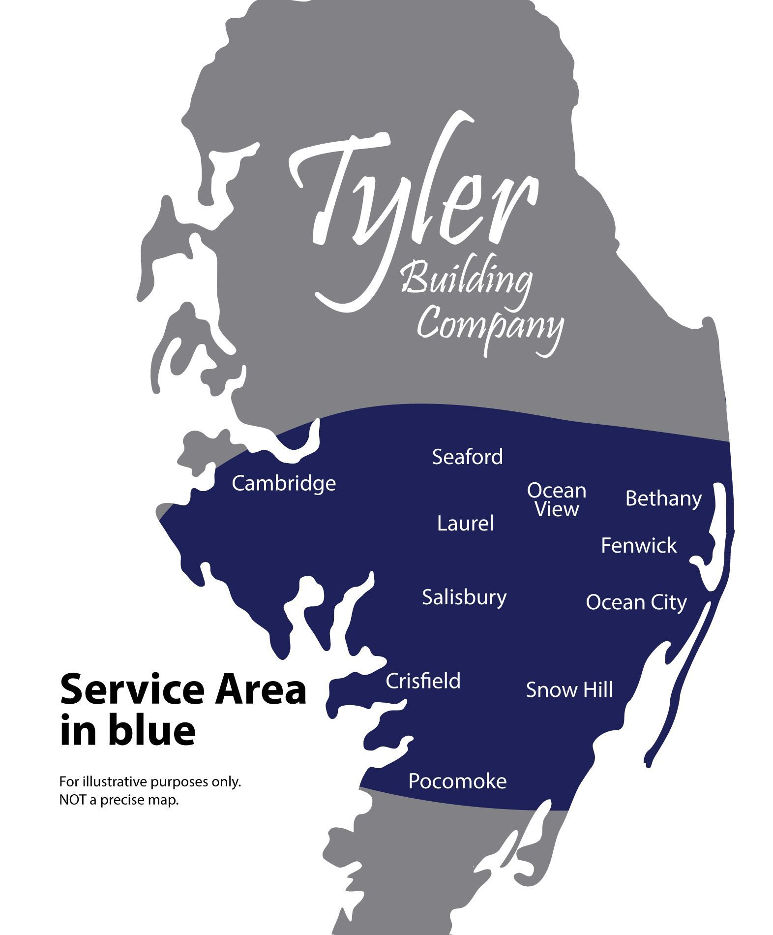 We service anywhere about 25 miles from Salisbury on the Eastern Shore of Maryland and Delaware. Below are some examples of the areas we serve.